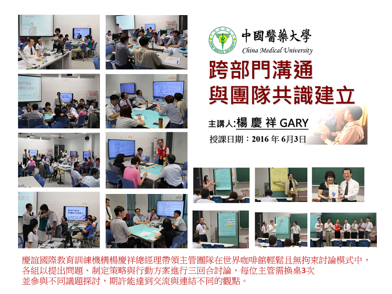 慶誼國際教育訓練機構自1997年成立以來,即以期許推動企業組織經營管理的生命教 育,從人的成長開始到企業的發展注入生命與生活的學習動力,並且在工作職場與家庭生活中學習一種誠實、積極的態度和自然的力量,即是建立Know-How與Know-Why雙修的成功者觀念與態度。因此慶誼公司的所有同仁亦以生命教育工作者的負責態度,努力於企業教育訓練。尤其更專注焦點於建立M.I.G.綠色奇蹟團隊潛能研習營的「同心共力」團隊共識建立潛能訓練系統。同時慶誼公司創辦人楊慶祥Gary,亦是國內首位以「心靈修練」的企業管理功能與效益─台灣的經驗與發現 (Managerial Function and Effectiveness of The Spiritual Discipline─Taiwan's Experience and Finding)為專題研究,並建立一套結合「多官能學習系統」(Multi-senery Learning System)的「心靈修練」企業教育訓練系統(S.D.T),本系統包含企業內訓、生命課程與潛能開發,同時針對特定學員開闢一個專門探討生命喜悅的園區─心靈功房。其目的在於結合眾人共同修練成一位有目標、肯努力、能專心且具足勇氣的心靈武士,最後轉化為樂在工作、感恩與分享的生命大師。